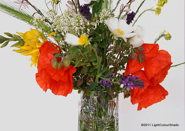 Spring wildflower nosegay with poppies and rock-rose flowers in a crystal vase (© 2011 LightColourShade. All rights reserved) |