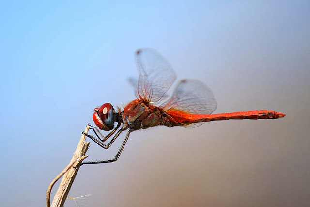 | Red-veined Darter, Nomad (Sympetrum fonscolombii) male on a dry stem. (© LightColourShade. All rights reserved) |