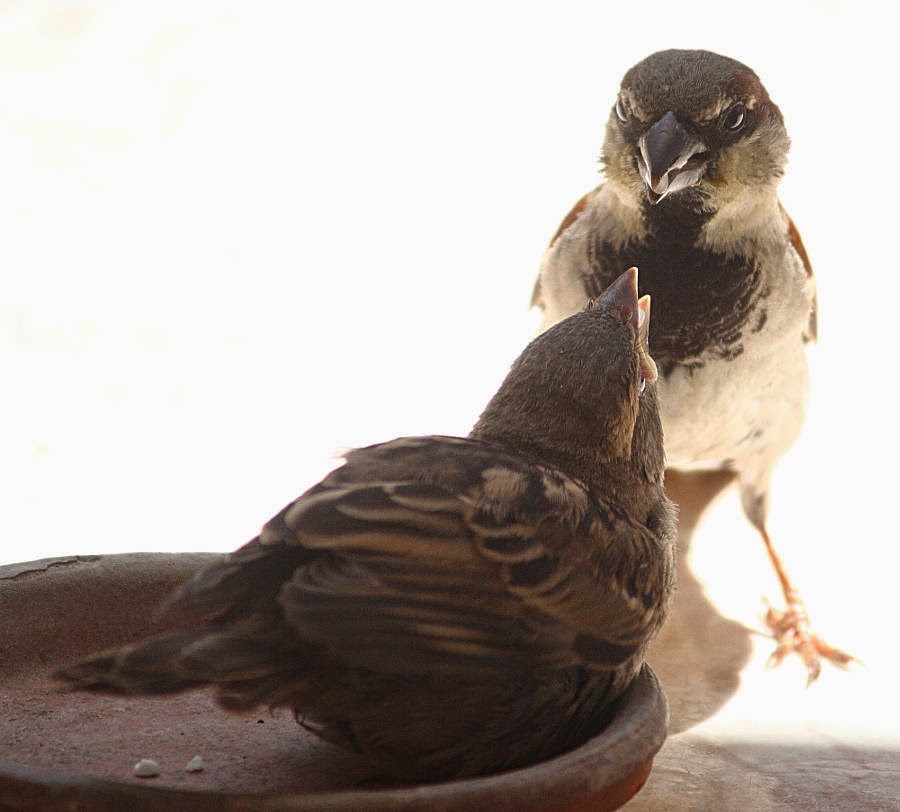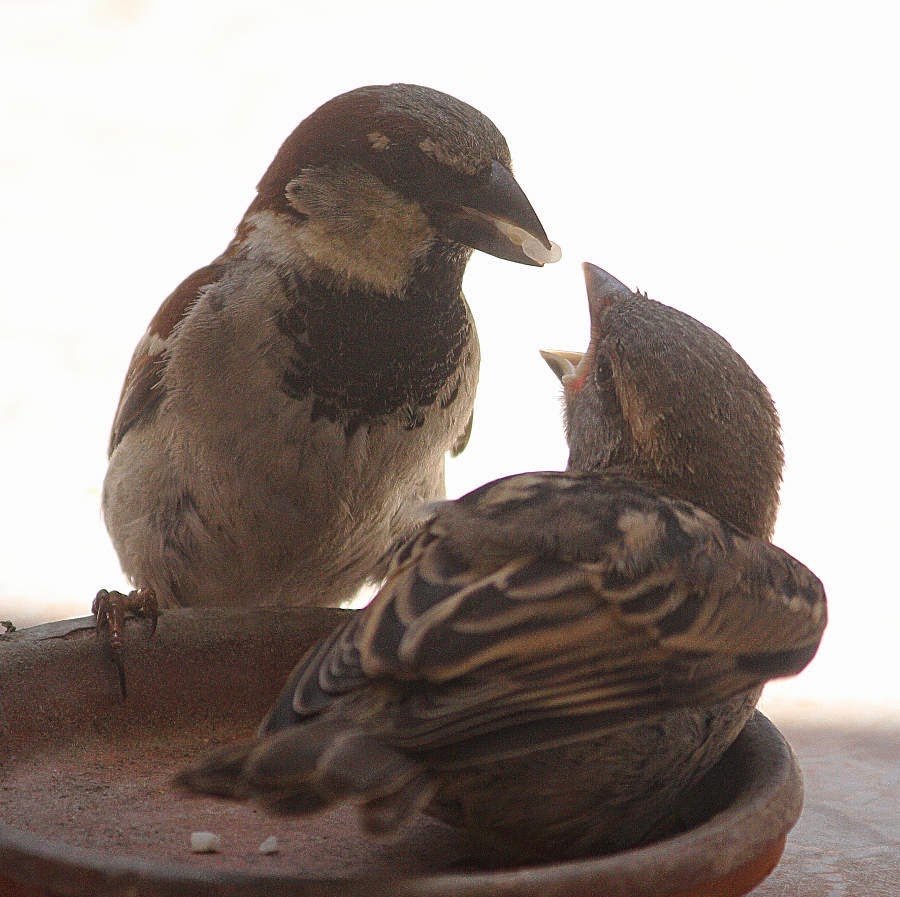 House Sparrow (Passer domesticus) male feeding his chick 3. (by-nc-nd) |