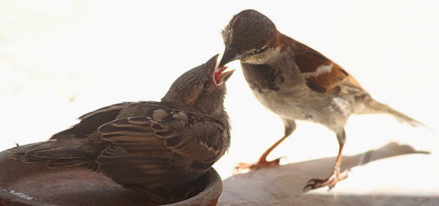 House Sparrow (Passer domesticus) male feeding his chick 5. (© LightColourShade. All rights reserved) |